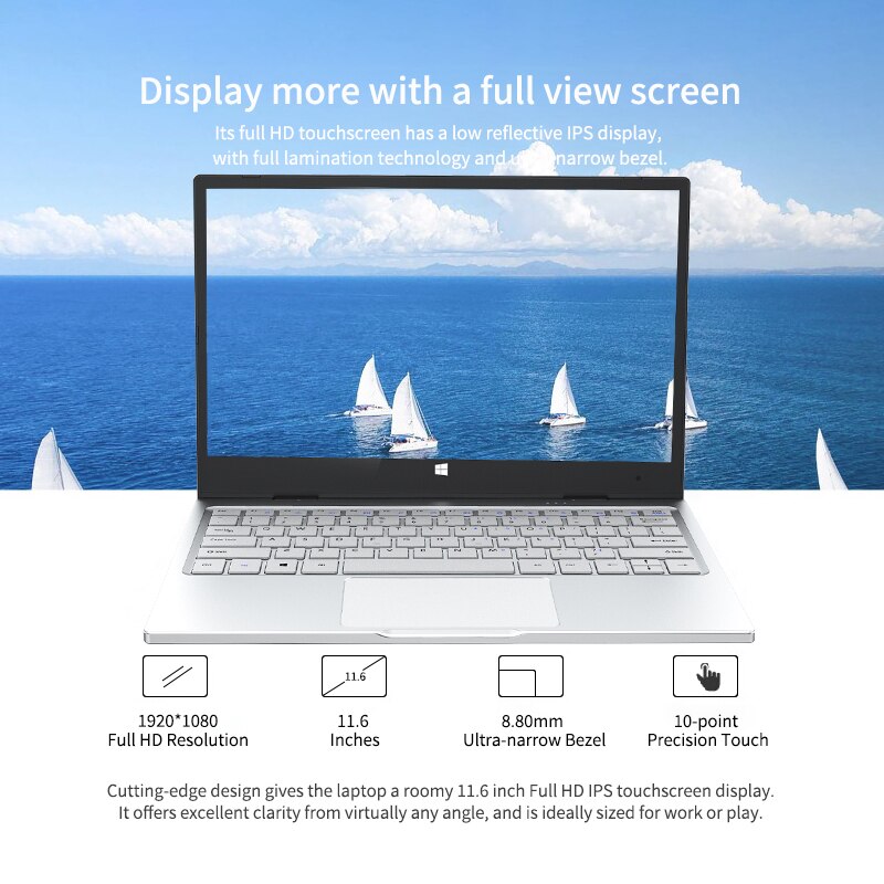 Its full HD touchscreen has a low reflective IPS display, with full lamination technology and ultra-narrow bezel.