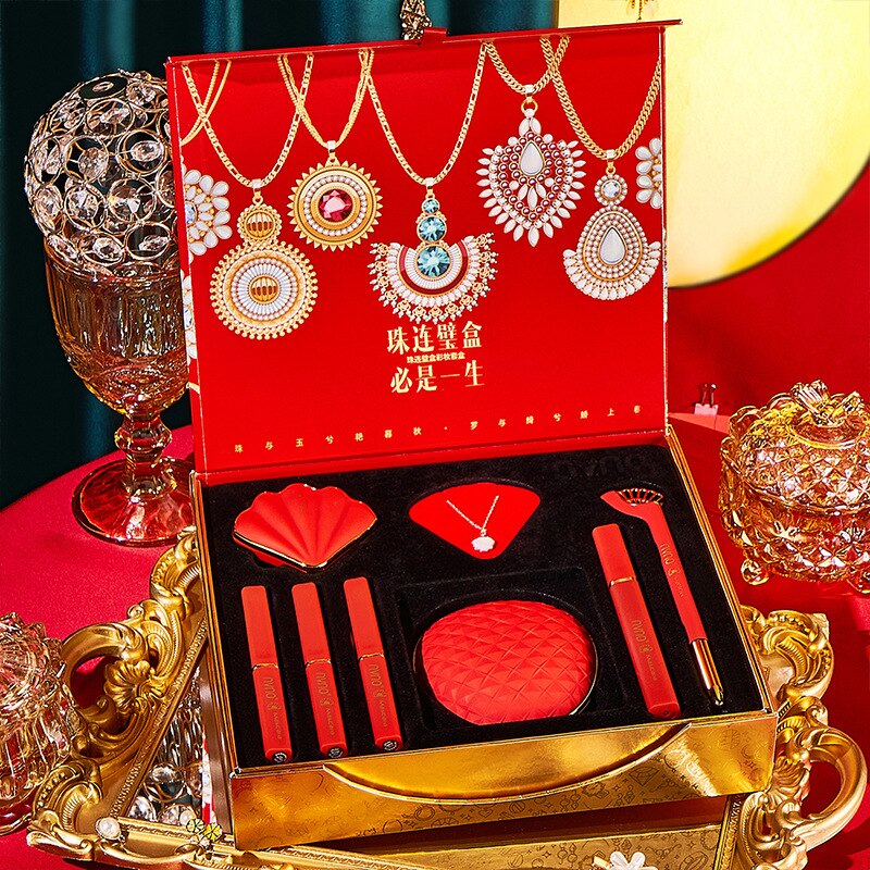 Color Makeup Set 8-piece Cosmetics Set Beauty Makeup Gift Box Valentine's Day Chinese Red Gift Set Kids Makeup Set for Girls